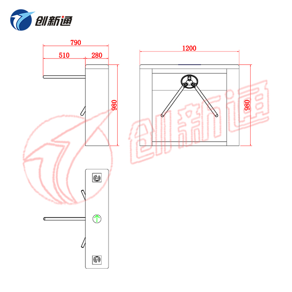 6)防尾隨功能:每過一人轉(zhuǎn)動(dòng)120度,如有人尾隨閘機(jī)自動(dòng)鎖死并報(bào)警。