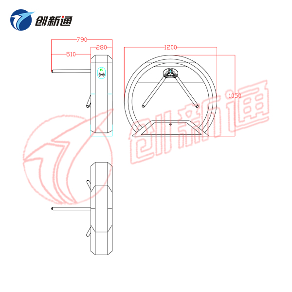 6)防尾隨功能:每過一人轉(zhuǎn)動120度,如有人尾隨閘機(jī)自動鎖死并報(bào)警。