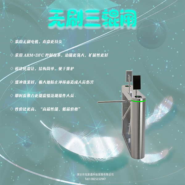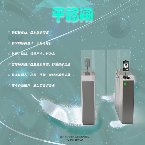 深圳市創(chuàng)新通科技發(fā)展有限公司,專業(yè)致力于出入口人行通道管理領(lǐng)域,為用戶提供專業(yè)而個(gè)性化的人行通道門禁系統(tǒng)和解決方案,是一家集研發(fā)、生產(chǎn)、銷售及服務(wù)為一體的國家高新技術(shù)企業(yè)。公司憑借多年積累的技術(shù)優(yōu)勢,率先同行業(yè)推出了一系列產(chǎn)品,市場反映強(qiáng)烈,質(zhì)量水平、科技安全都被公認(rèn)為一流!公司主經(jīng)營產(chǎn)品有三輥閘、擺閘、翼閘、旋轉(zhuǎn)閘、速通門、平移閘、一字閘等通道閘機(jī)。公司倡導(dǎo):創(chuàng)新通道技術(shù)、引領(lǐng)通用潮流!采用國際的技術(shù)生產(chǎn)出性價(jià)比高的通用型現(xiàn)代化高科技產(chǎn)品。憑借超強(qiáng)的技術(shù)實(shí)力整合研制而成的創(chuàng)新通用智能通道應(yīng)用系統(tǒng),將科技融入管理,輕松實(shí)現(xiàn)智能門禁通道系統(tǒng)、、人臉識(shí)別、身份證識(shí)別、二維碼識(shí)別、指紋識(shí)別、智能消費(fèi)通道系統(tǒng)、無障礙通道管理系統(tǒng)、智能電子門票通道系統(tǒng)、場館門票系統(tǒng)等,使“通用化”的高科技智能通道產(chǎn)品慢慢融入各行各業(yè)!